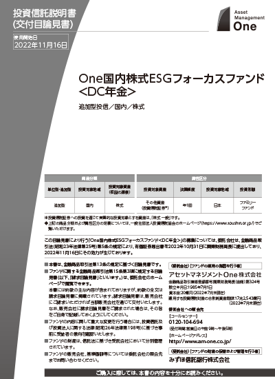 本ウェブサイトは、アセットマネジメントOne株式会社が作成したものです。お申込に際しては、投資信託説明書(交付目論見書)をあらかじめ、または同時にお渡し致しますので、必ず内容をご確認の上、ご自身でご判断ください。