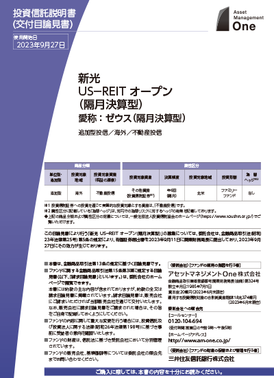 1.主として新光 US-REIT オープン・マザーファンド(以下「マザーファンド」という場合があります。)を通じてUS-REITに分散投資を行い、市場平均よりも高い水準の配当収益の確保と長期的な値上がり益の獲得を目指した運用を行います。