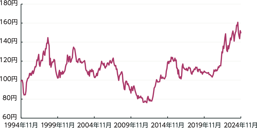 歴史的な円安の進行2023年は日本と先進各国との金融政策の違いによって生じた日米金利差から、円安が歴史的な水準まで急激に進行しました。以降も後述する金利水準の差などが意識され、円安状況が継続しています。