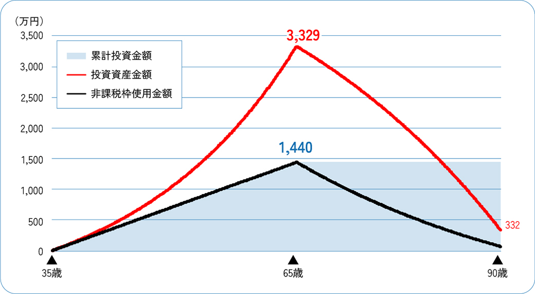 最大投資資産金額:3,329万円(65歳時点)