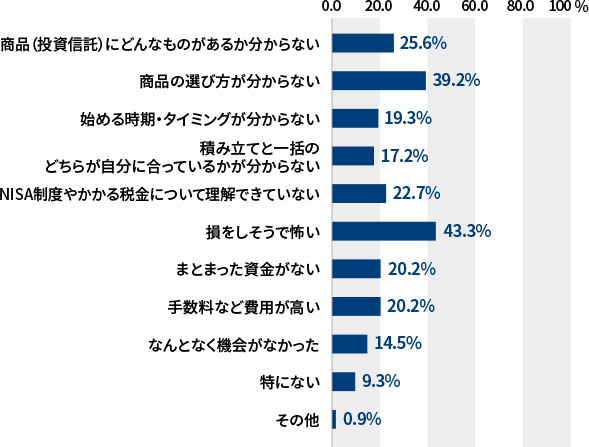 - 「損をしそうで怖い」が43.3%と最多でした。