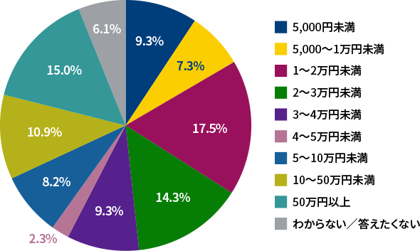 - 「1~2万円未満」が17.5%と最多でした。