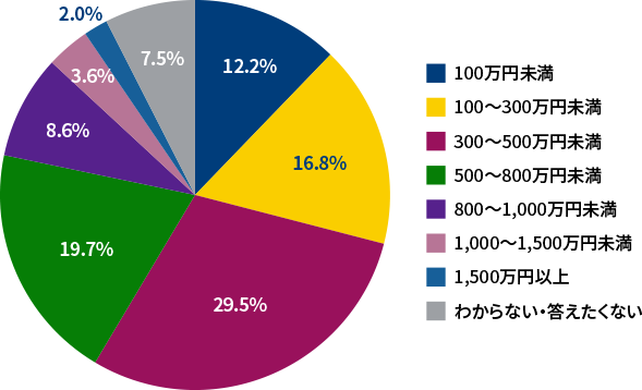 - 「300~500万円未満」が29.5%と最多でした。