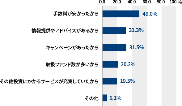 - 「手数料が安かったから」が49.0%と半数近くに達し最多でした。