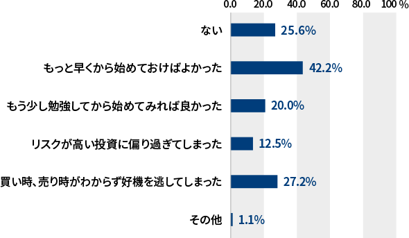- 投資を始めてみて、後悔したことは何ですか?(複数回答)
