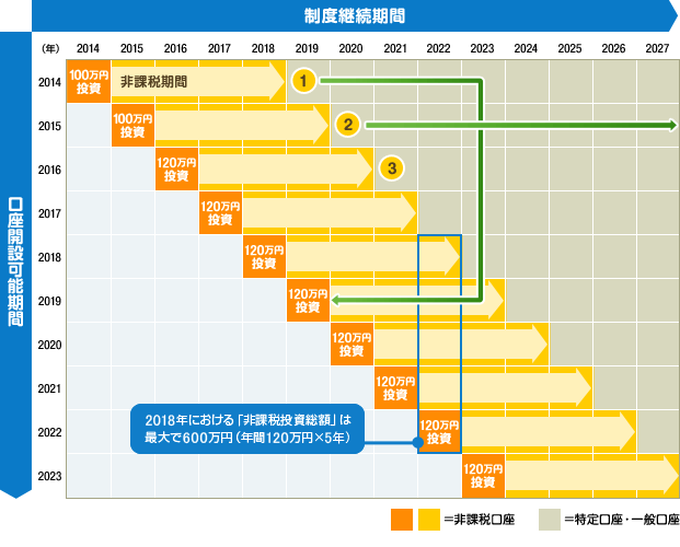 - ※1)投資を始めた年によって、非課税投資総額の最大金額は異なります。